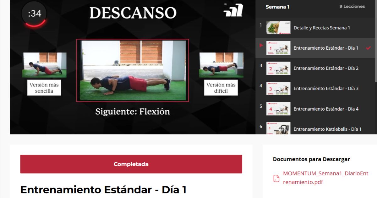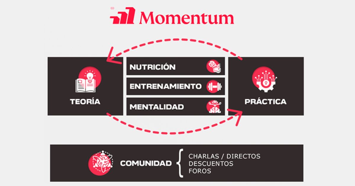 Momentum es un programa online de duración anual que integra nutrición, entrenamiento y educación en hábitos saludables, con el objetivo de generar cambios sostenibles en la salud y la composición corporal.